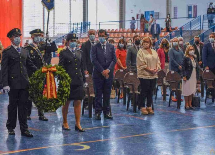 Caballero reconoce con su presencia la función que cumple la Policía Nacional en beneficio de la sociedad, felicitando a los hombres y mujeres que lo conforman en este día tan especial, en torno a la celebración del acto institucional más importante del cuerpo, según expresaba el comisario jefe provincial, José Alberto Camacho, “que simboliza y materializa el orgullo de ser policía y servir a la sociedad”.