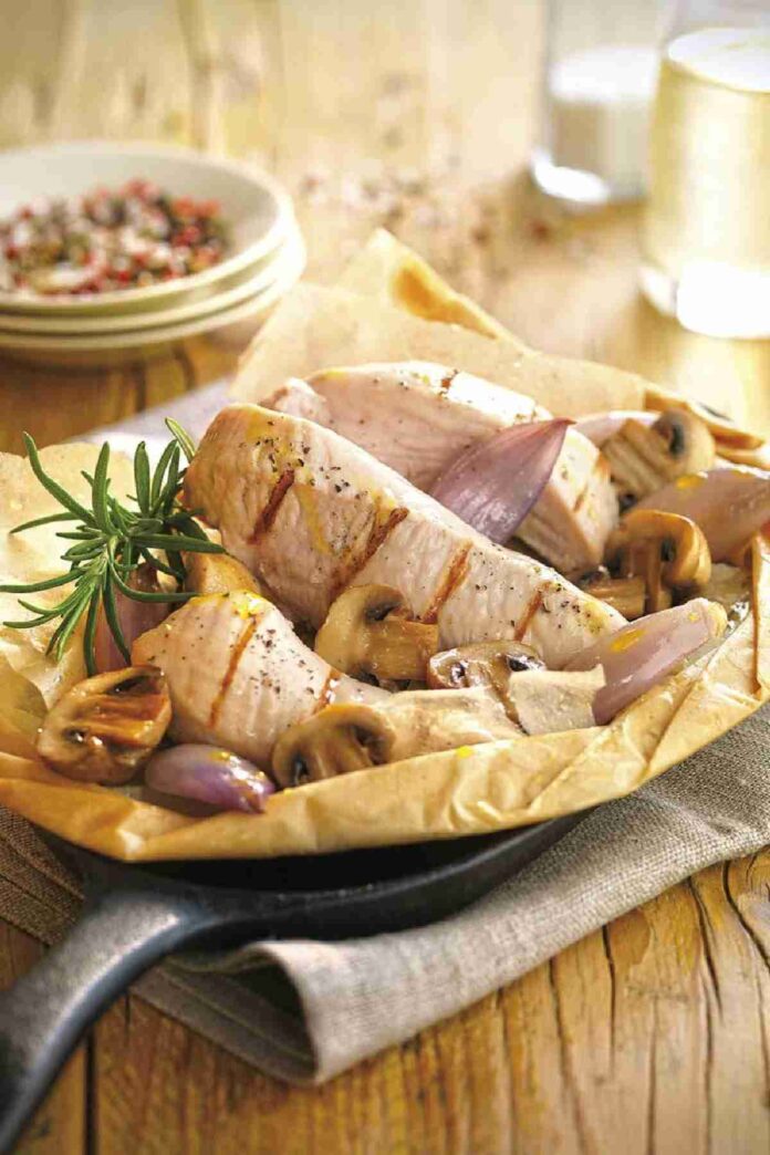 Cenas ligeras y saludables: pavo con champiñones en papillote