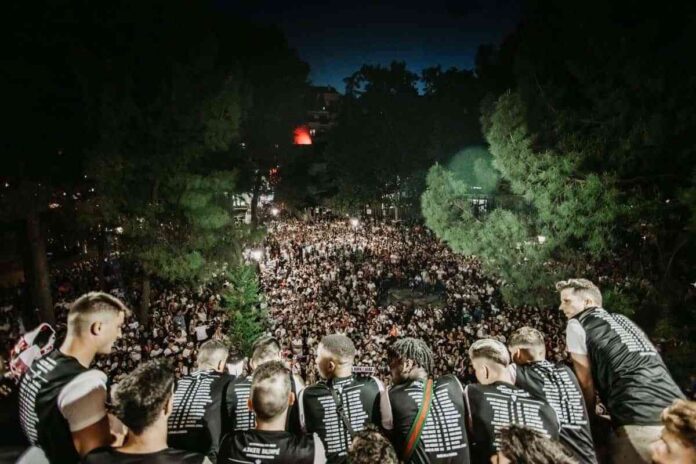 Tras sus declaraciones, continuó festejando el resto de los jugadores que, en perfecta sintonía con los asistentes, cantaron y bailaron el himno del club.