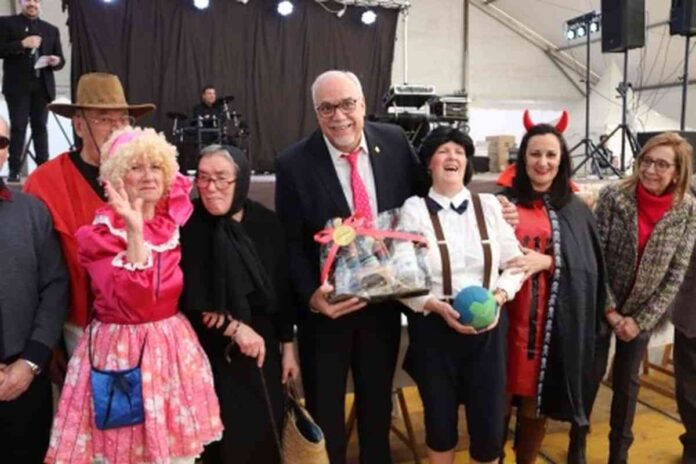 Antes de comenzar el baile, amenizado por la orquesta ‘Bámbola’, y junto a representantes del Consejo del Centro de Mayores, las autoridades también entregaron lotes de productos de la tierra a las mejores máscaras de la tarde.