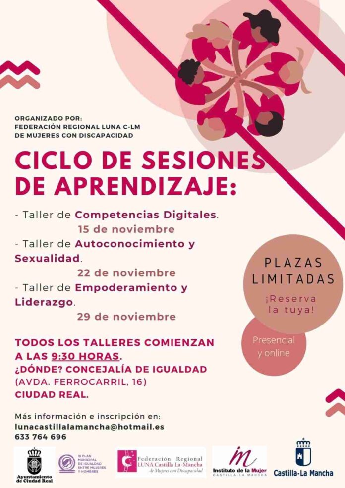 Un ciclo de sesiones de aprendizaje, ha sido organizado por la entidad, Federación Regional Luna Castilla-La Mancha de mujeres con discapacidad. Los que tendrán lugar en la Concejalía de Igualdad del ayuntamiento de Ciudad Real, en Avenida Ferrocarril 16, Ciudad Real.