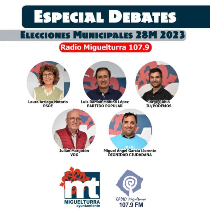 Dos debates electorales ha organizado la emisora de radio municipal, Radio Miguelturra. Y en los mismos participarán los cinco candidatos a la alcaldía de la localidad miguelturreña en las elecciones del próximo 28 de mayo de 2023. Los debates en los que se contará con público, se celebrarán en la Casa de Cultura de Miguelturra (Ciudad Real).