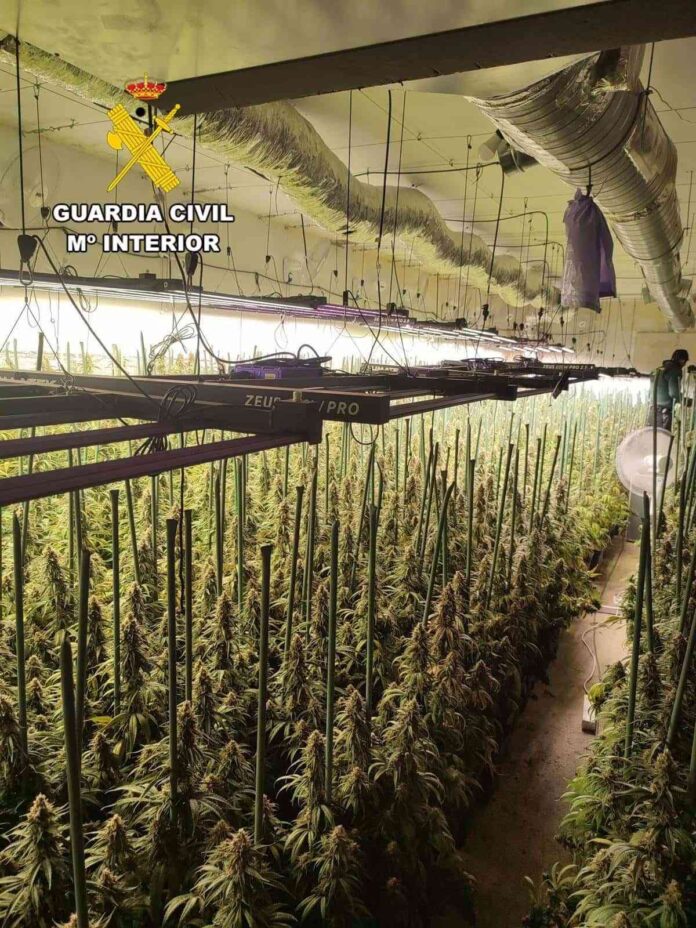 En el sótano de una vivienda se localizó una plantación de marihuana con un total de 1.800 plantas en avanzado estado de floración, en otro domicilio, en el sótano se observan inflorescencias( cogollos) en proceso de secado esparcidos en el suelo y en la tercera, plantas colgadas en proceso de secado siendo un total de 34 kilogramos preparados para su distribución, ha informado la Guardia Civil en un comunicado.