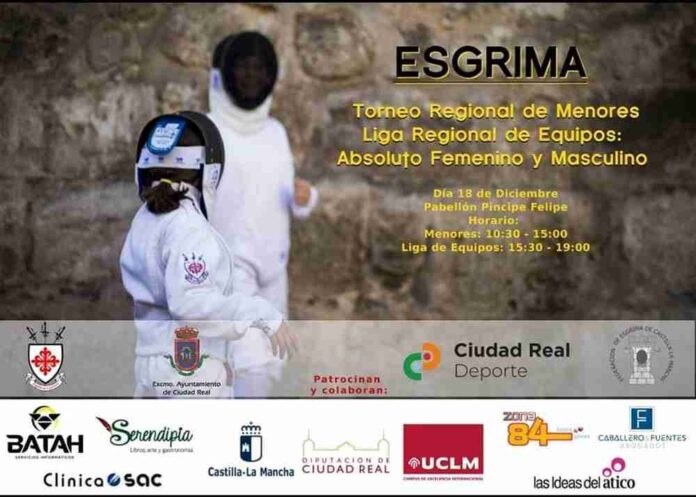 Ciudad Real acogerá el día sábado 18 de diciembre, en el Pabellón Príncipe Felipe el torneo regional de menores y la liga regional de equipos absoluto femenino y masculino en la especialidad de esgrima con la participación de 100 deportistas.