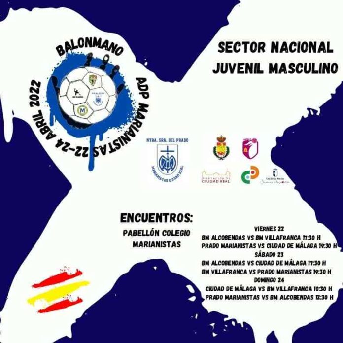 Esta mañana se presentaba el sector nacional juvenil de balonmano que se va a llevar a cabo en Ciudad Real del 22 al 24 de abril. En el Sector F de Ciudad Real, han quedado encuadrados Prado Marianistas, Balonmano Villafranca, Ciudad de Málaga y Academia Balonmano Alcobendas. El conjunto juvenil masculino del Prado Marianistas, entrenado por Fernando Imedio, ejercerá de anfitrión y buscará la primera plaza del grupo F. La competición se celebrará desde este viernes y hasta el domingo en el pabellón del colegio y en el caso del equipo ciudadrealeño debutará el viernes (19.30 horas) ante el Ciudad de Málaga, se medirá el sábado (19.30 horas) al Villafranca extremeño y concluirá su participación el domingo enfrentándose al Alcobendas madrileño (12.30 horas). Los demás partidos serán el jueves Alcobendas-Villafranca (17.30 h.), el viernes Alcobendas-Málaga (17.30 h.) y el domingo Málaga-Villafranca (10.30 h.).
