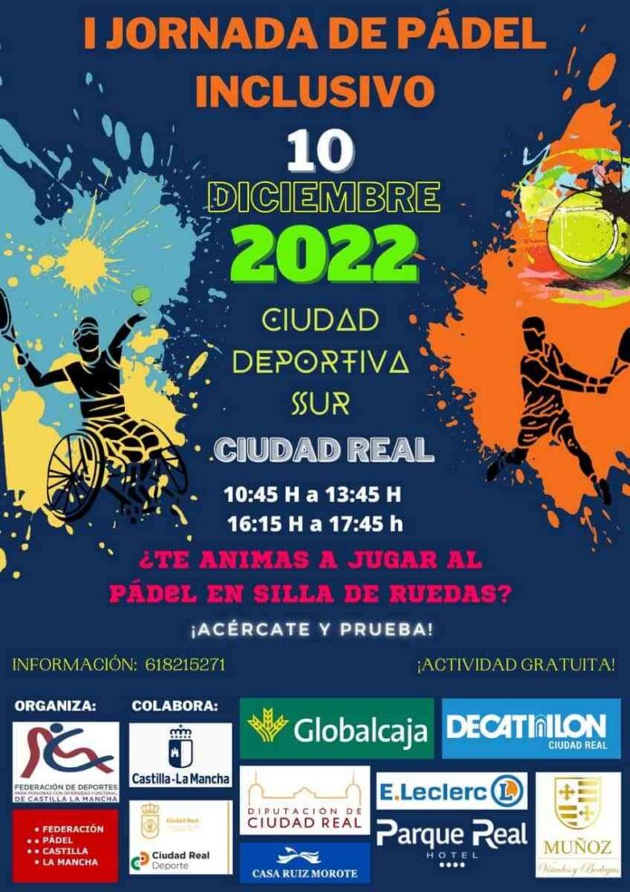 La entrada Ciudad Real acogerá la primera Jornada de Pádel inclusivo y la segunda edición del Campeonato regional de Pádel en silla de ruedas en Castilla-La Mancha el 10 de diciembre en la Ciudad Deportiva Sur se publicó primero en Diario de Castilla-la Mancha.