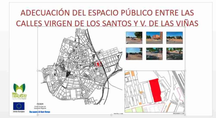 También se ha aprobado el proyecto de adecuación del espacio público comprendido entre las calles Virgen de los Santos y Virgen de las Viñas, cofinanciado por el Fondo Europeo de Desarrollo Regional (FEDER), dentro de la estrategia EDUSI. Estas actuaciones se incluyen dentro de la línea de actuación 5, dentro del proyecto de regeneración integral en la zona del Barrio del Pilar. Tiene una base de licitación de 754.649,39 euros y se está desarrollando en dos acciones diferentes, por una parte, un itinerario que conecte la estación del AVE con el casco urbano que ya está prácticamente terminada a falta de recepcionar y por otra, la ordenación y mejora del barrio en el descampado que separa las viviendas de La Esperanza del resto del barrio. Se incorporará un carril bici en la calle D. Pedro Pardo García, que conectará con el del Campus Universitario. Mariana Boadella ha explicado que, a veces, estos carriles “no se entienden porque se ven tramos no conectados, ya que los proyectos no están terminados, pero la intención es unir todos ellos, con un cambio sustancial de la movilidad activa de la ciudad”. Además, con esta ambiciosa ejecución, se realizará una ordenación de dos parcelas, en una de ellas se proyecta una actividad deportiva compuesta por un espacio para la realización de parkour-calistenia y un aparcamiento disuasorio; y en la parcela anexa se proyectará una zona verde esparcimiento, que servirá de acceso a un edificio multifuncional.