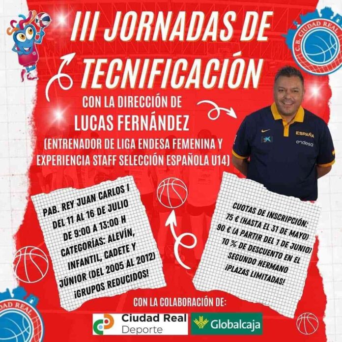 Del 11 al 16 de julio, el Pabellón Rey Juan Carlos I acogerá las III Jornadas de tecnificación de baloncesto, con la dirección de Lucas Fernández, entrenador de Liga Endesa femenina y con experiencia en el staff de la selección española U14. Esta edición contará con un total de 36 niños y niñas participantes. Se trata de una apuesta proveniente Club de Baloncesto CR, que ha contado con el apoyo del Ayuntamiento de Ciudad Real, a través de la Concejalía de Deportes.