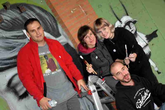 Cuatro artistas locales de Ciudad Real están participando durante el día de hoy en la confección de dos grafitis contra la trata y la prostitución junto a la Concejalía de Igualdad del Ayuntamiento de Ciudad Real. Gela López, Paula Arranz, Blanc Lemur y J. Ponsoda están elaborando dos propuestas de sensibilización contra la trata de personas y la prostitución, como anticipo a las II Jornadas contra la trata y la prostitución que se celebrarán la semana que viene.