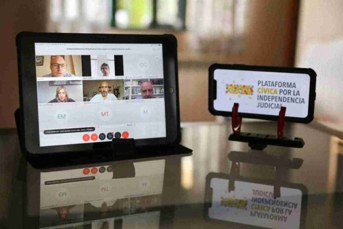 Carmen Picazo, Alejandro Ruiz y David Muñoz Zapata, diputados autonómicos de Ciudadanos, han mantenido este martes una videoconferencia de trabajo con Jesús Villegas y José Muelas, de la Plataforma Cívica por la Independencia Judicial. Los parlamentarios del partido naranja y los representantes de la plataforma han coincidido en su preocupación por el control político de la justicia en España, situación que claramente está impidiendo una lucha realmente eficaz contra la corrupción en las instituciones.