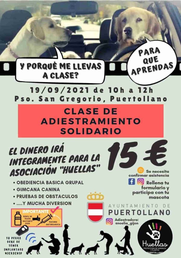 Una clase de adiestramiento canino impartirá la Protectora de animales “Huellas” con la colaboración del ayuntamiento de Puertollano (Ciudad Real), este domingo 19 de septiembre, junto a la Concha de la Música del Paseo de San Gregorio.