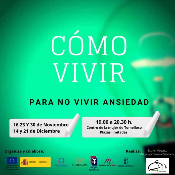 La entrada ‘Cómo vivir para no vivir ansiedad’ el 16, 23 y 30 de noviembre y 14 y 21 de diciembre en el Centro de la Mujer de Tomelloso se publicó primero en Diario de Castilla-la Mancha.