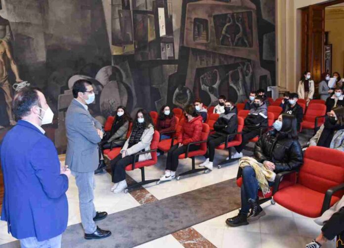 El presidente de la institución provincial, José Manuel Caballero, ha dado la bienvenida a los estudiantes de primero de Bachillerato del instituto San Juan Bautista de la Concepción de Almodóvar del Campo, quienes han estado acompañados por tres profesores.