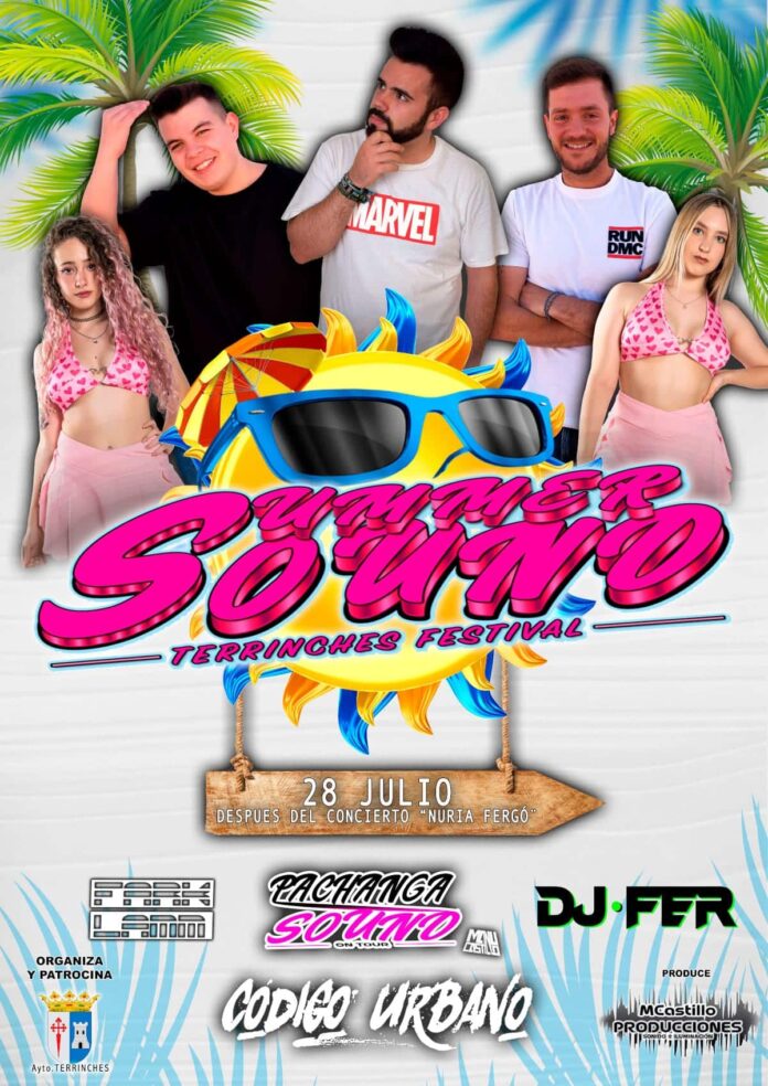 Y esa misma noche, y para los que quieran seguir disfrutando de la música y el baile, una vez finalizado el concierto de Nuria Fergó, arrancará el Summer Sound Terrinches Festival, con las actuaciones de Fark Lamm, Pachanga Sound (Manu Castillo), DJ Fer y Código Urbano.