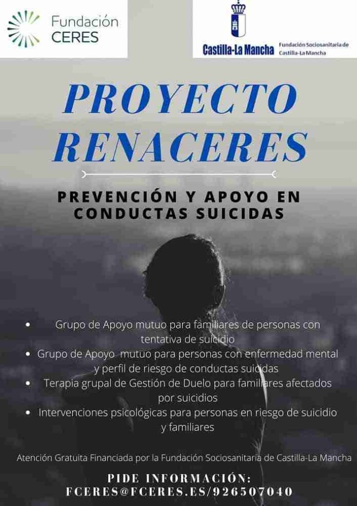 Para prevenir eficazmente el suicidio, desde Fundación Ceres se está llevando a cabo el proyecto RenaCeres, el nombre hace referencia al objetivo que desde Fundación Ceres se quiere conseguir con esta población, que renazcan sus ilusiones por vivir, realizando una prevención en las conductas suicidas para conseguir disminuir las tasas de suicidio en Castilla-La Mancha.