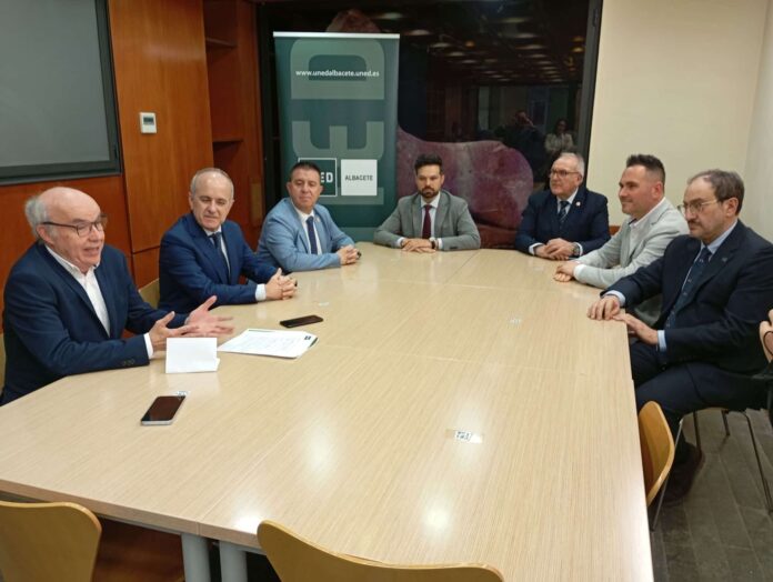 La Real Academia de Medicina de Castilla-La Mancha, presidida por Pedro Tárraga, ha formalizado un convenio de colaboración con la Universidad Nacional de Educación a Distancia (UNED), representada por su rector, Ricardo Mairal. En el acto, celebrado en la sede de la Academia, ubicada en la Posada del Rosario, también participaron el director del centro asociado de la UNED en Albacete, Rafael Martínez, y el presidente del Patronato de la institución, Santiago Cabañero.