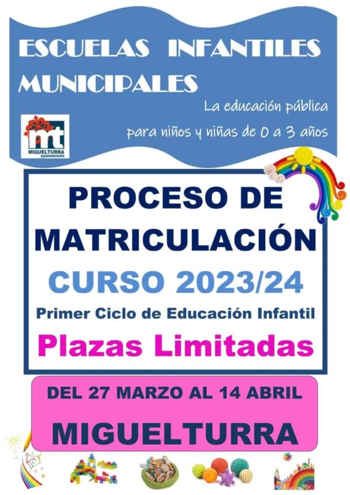 El proceso de admisión para el curso 2023-2024 de las dos escuelas infantiles de titularidad pública de Miguelturra (Ciudad Real) “Pelines” y “Coleta” ha sido convocado por la concejalía de Educación del ayuntamiento de la localidad.