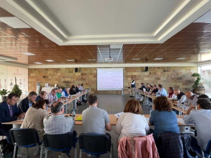 Cooperativas Agro-alimentarias de Castilla-La Mancha reunió este martes en la Cooperativa Ntra. Sra. de Manjavacas, de la localidad conquense de Mota del Cuervo, a los presidentes y gerentes de las bodegas-cooperativas de la región para participar en la reunión sectorial vitivinícola en la que se analizó la campaña de la vendimia en Castilla-La Mancha, la cual se encuentra prácticamente culminada. Una reunión en la que se confirmaron las previsiones que la organización ya adelantó antes del inicio de la campaña y que se sitúan entre los 19,5 y 20 millones hl de vino y mosto cosechado. Cifra que, a nivel nacional, alcanza los 36-36,5 millones de hl.
