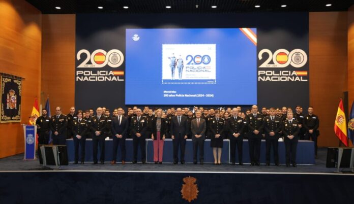 Correos ha presentado un sello conmemorativo del Bicentenario de la Policía Nacional, un evento de excepcional importancia pública que se celebrará a lo largo de 2024 con una serie de eventos en todo el territorio nacional. Bajo el lema «Comprometidos contigo», estos doscientos años de existencia marcan un hito histórico que destaca el papel de la Policía Nacional como el cuerpo de seguridad estatal más antiguo de España, y Correos ha decidido unirse a esta celebración emitiendo este sello conmemorativo.