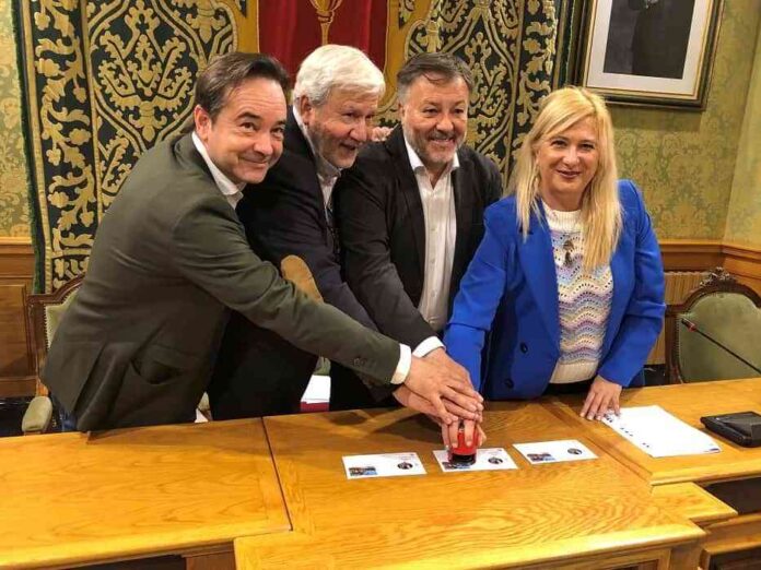 Correos ha presentado hoy un sello dedicado a Cuenca como Capital Española de la Gastronomía 2023, en un acto celebrado en el Ayuntamiento de la localidad al que han asistido el alcalde de Cuenca, Darío Francisco Dolz Fernández, el presidente de la Federación Española de Periodistas y Escritores de Turismo, Mariano Palacín Calvo, y la directora de Filatelia de Correos, Leire Díez Castro; entre otros.