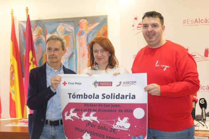 Esta mañana ha tenido lugar la presentación de la segunda edición de la Tómbola Solidaria de Cruz Roja, un evento que se ha consolidado como parte integral de las festividades navideñas de Alcázar de San Juan. La concejala de Asuntos Sociales, Patricia Benito, acompañó a Jesús Rodríguez, presidente de Cruz Roja Alcázar de San Juan, y a Mariano Díaz-Miguel, presidente de ASECEM, durante la presentación.