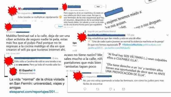 En todos los países, algo menos de la mitad (el 46%), el 49% en España, de las encuestadas que habían sufrido abusos o acoso en Internet dijo que ésos eran de naturaleza misógina o sexista.