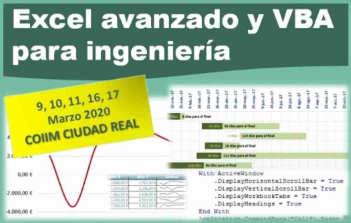 Un curso de Excel avanzado y VBA (Visual Basic for Apllications) ofrece el Colegio Oficial de Ingenieros Industriales (COIIM-cr). Este curso es organizado por la delegación provincial de dicho colegio en Ciudad Real para el mes de marzo. El mismo está dirigido a ingenieros en activo. Pero también para estudiantes de ingeniería y público en general. Usuarios que desarrollan su actividad en profesiones técnicas. Y que desean completar su formación en Excel con un curso de nivel avanzado.