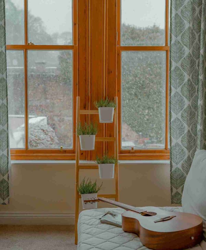 Las plantas son sinónimo de naturaleza y salud, nos gustan mucho y además decoran. Piensas que es imposible agregarlas a un pequeño dormitorio, pues ahora verás, que sí se puede. Aprovechando esta idea genial, podrás colocar una pequeña escalera contra la pared y convertirla en un jardincito interior. Bastará con colocar sujetos con tornillos, si te gusta el DIY, puedes hacerlo por ti misma, unos maceteros. Pequeños y en el mismo color se verán preciosos igual te puedes poner creativa y agregar colores, plantas y formas que te gusten.