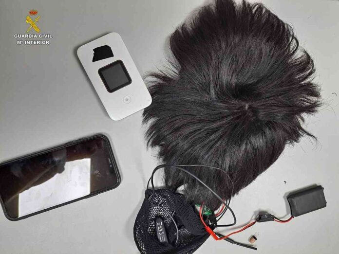 Durante la identificación, se detectó que la persona escondía una microcámara en una peluca que enviaba imágenes al exterior, donde otra persona le proporcionaba las respuestas a través de un receptor de radio oculto.