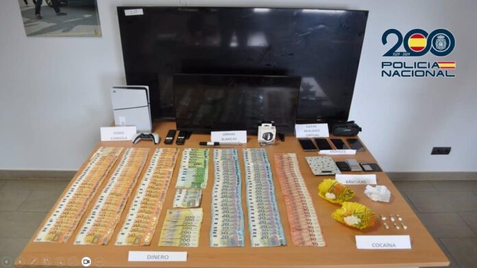 Durante el registro, los agentes encontraron varias dosis de cocaína listas para su venta, además de tres piezas de la misma sustancia que pesaban en total 60 gramos. También se hallaron 10.035 euros en billetes de distintas denominaciones, que estaban fraccionados y ocultos en diferentes rincones de la vivienda. Además, se confiscó una serie de utensilios que se utilizaban para la manipulación, corte y venta de la droga.