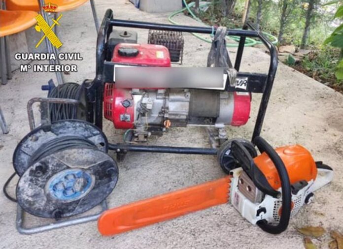 Con la recuperación de estos objetos, la Guardia Civil inició gestiones para identificar y localizar al propietario legítimo, lo que resultó posible tras descubrir que los efectos procedían de un cobertizo al que el detenido había accedido escalando un vallado perimetral. En total, se logró recuperar tres baterías solares, un generador eléctrico, dos motosierras, tres mangueras de cable y una garrafa homologada para el transporte de combustible, todos valorados en aproximadamente 3.000 euros. Una vez identificada la propiedad de los objetos, se procedió a devolverlos a su dueño.