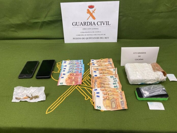 Agentes del Puesto de la Guardia Civil de Quintanar del Rey han arrestado a dos individuos en Villanueva de la Jara, en el marco del Plan Nacional de Actuación contra la criminalidad organizada asociada al tráfico de drogas del Ministerio del Interior. La detención se llevó a cabo durante un servicio de Seguridad Ciudadana, cuando los agentes avistaron un vehículo que circulaba a alta velocidad en el punto kilométrico 56 de la carretera CM-220.