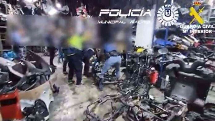 La primera fase de explotación que se ha llevado a cabo en diversas zonas de Madrid, los agentes han procedido a la entrada y registro de cinco inmuebles, dos de ellos en los domicilios de los principales cabecillas y otros dos en los talleres donde realizaban el despiece de las motocicletas de diferentes marcas, que previamente habían sido sustraídas, donde ocultaban diferente material utilizado y efectuaban la manipulación.