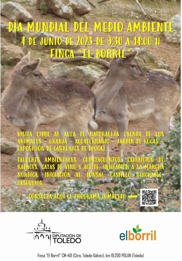 La Finca ‘El Borril’, una propiedad de la Diputación de Toledo, tiene preparada una serie de actividades para el próximo domingo con motivo del Día Mundial del Medio Ambiente. Entre las actividades previstas, que durarán desde las 9:30 hasta las 14:00 horas, se incluyen catas de vino y aceite, talleres educativos y espectáculos de cetrería con aves rapaces.