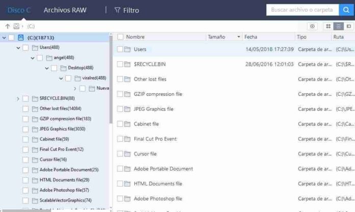 En este momento, la aplicación empezará a realizar un escaneo rápido. Una vez finalizado, podrás acceder a cada una de las carpetas recuperadas desde el lateral izquierdo del programa y ver cada uno de los archivos eliminados en la parte derecha. Si os estáis preguntando que hacer para recuperar esos archivos, la respuesta es fácil. Simplemente hay que seleccionar la casilla de aquellos archivos que queremos recuperar y pulsar sobre el botón “Recuperar”.