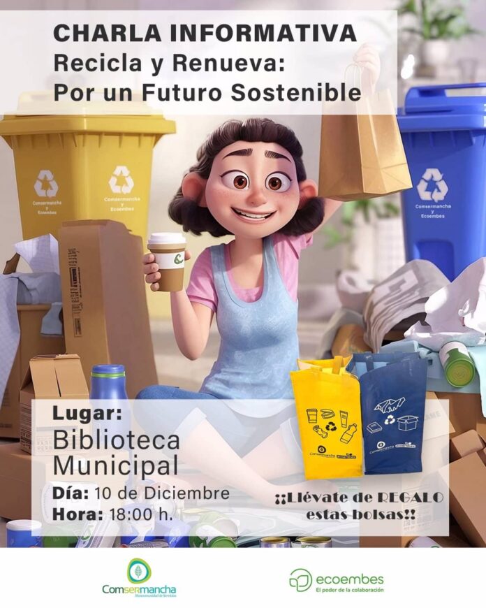El salón de actos de la Casa de Cultura de Tomelloso acogerá el próximo martes, 10 de diciembre, una charla dirigida a la gestión de residuos. La actividad, que lleva por título ‘Recicla y renueva: por un futuro sostenible’, ha sido organizada por Comsermancha en colaboración con Ecoembes y la concejalía de Medio Ambiente del Ayuntamiento de la ciudad.