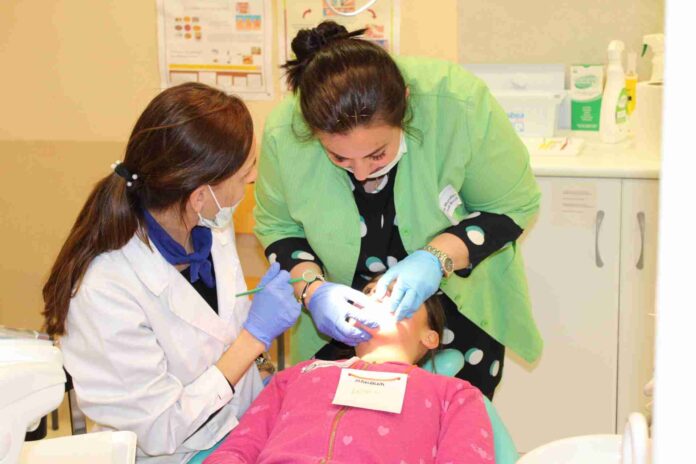 La Jornada se ha organizado con motivo de la celebración del Día Mundial de la Salud Oral (20 de marzo) y han participado dos colegios con 60 niños y niñas, aunque en lo que se lleva de curso han pasado casi 200 alumnos que han sido explorados por los estudiantes del ciclo. A los participantes les hacen una ficha para los padres donde les dicen si tienen caries o la mordida está bien, incluso si tienen buena higiene oral. Mari Ángeles Barberá, responsable del ciclo explica que «casi sin darnos cuenta estamos diciendo a los padres que hay que ir al dentista. Los alumnos del modulo de Educación se ejercitan también, a través de montajes de talleres como en este caso han sido el juego de la oca adaptado, el twister, phototocall o la preparación de dibujos relacionados con los dientes, un diploma para rellenar o dibujos para colorear. Además se ha preparado un audiovisual para que los alumnos se conciencien.