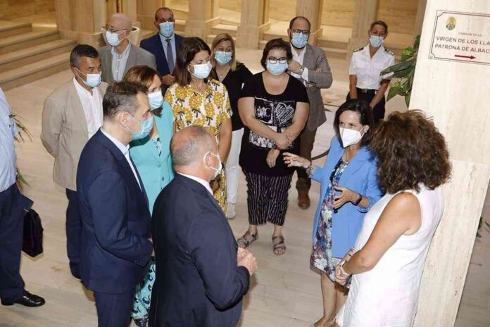 Margarita Robles ha firmado en el libro de honor de la ciudad, calificando de «honor» visitar «esta maravillosa ciudad de Albacete, un orgullo para España, de la que todos los días salen hombres y mujeres que hacen un país mejor».