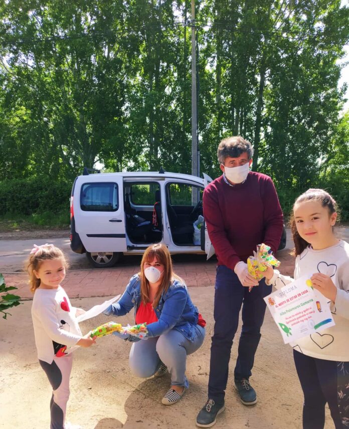 El alcalde, Ángel Gómez, ha sido el encargado de distribuirlos visitando personalmente todas las casas donde residen niños hasta los 12años de edad y dándoles las gracias por su comportamiento y esfuerzo durante el confinamiento por la crisis sanitaria del coronavirus.