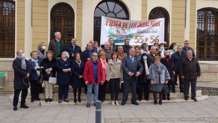 Tras una misa de acción de gracias que se ha celebrado en la Iglesia Parroquial, los vecinos y vecinas de Quintanar de la Orden (Toledo) nacidos en 1955 y 1956 se desplazaban hasta el Ayuntamiento donde eran recibidos por el alcalde, Juan Carlos Navalón y la concejala de Bienestar Social, Ana María Serrano.