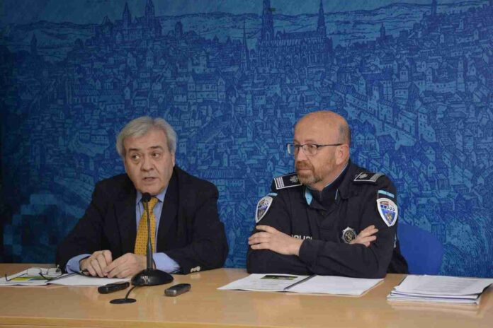 El concejal de Movilidad y Seguridad Ciudadana, Juan José Pérez del Pino, ha presentado este lunes la memoria de actuaciones de la Policía Local relativa al año 2017. Este documento recoge desde los recursos humanos y materiales del Servicio, como las denuncias, controles, accidentes y cuestiones en materia de seguridad vial y ciudadana, hasta asuntos como las áreas peatonales, la seguridad escolar o los servicios especiales que se prestan por rodajes cinematográficos.