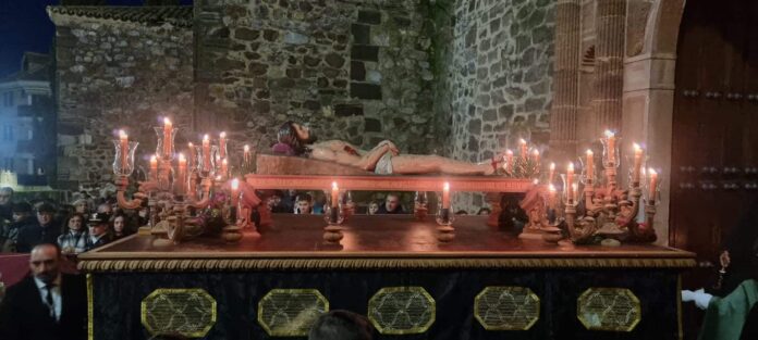 La imagen venerada del Santísimo Niño Jesús precedía al Cristo de las Maravillas, una obra de pasta de madera con historia adquirida en los años 40 en los Talleres de arte cristiano de Olot, Girona. El Cristo yacente, portado por 35 costaleros y obra de D. José Ángel Palacios Fernández, se mostraba ante los ojos de los asistentes, seguido por el paso de la Soledad.