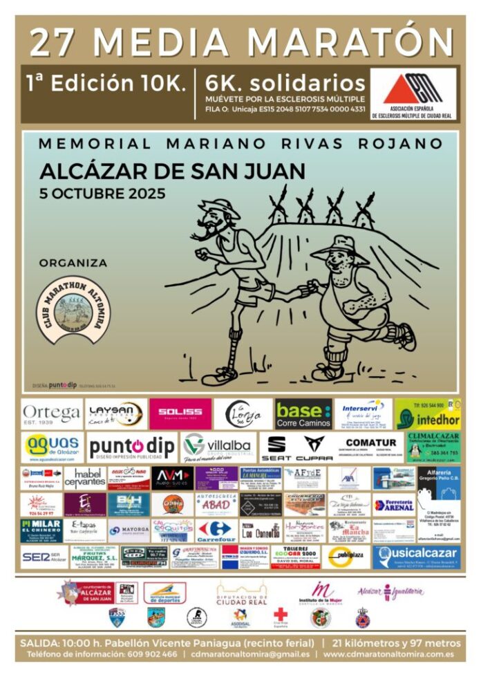 El Club Maratón Altomira, junto a la Concejalía de Deportes del Ayuntamiento de Alcázar de San Juan, ha anunciado la XXVII edición de la Media Maratón de Alcázar de San Juan, que tendrá lugar el domingo 5 de octubre a las 10:00 horas. Este año, la salida y la meta se trasladarán al Recinto Ferial debido a las obras en la Avenida del Deporte. Además, se introduce una nueva Carrera 10K, sumándose a la Media Maratón, la Carrera Solidaria por la Esclerosis Múltiple y la Prueba Adaptada.