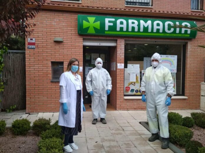 La Diputación Provincial se hizo cargo en primera instancia de una limpieza de los exteriores de las farmacias y en esta segunda fase, además también ha limpiado el interior y desinfectado con cañones de ozono de los interiores de las 107 farmacias rurales de la provincia por trabajadores de la diputación.