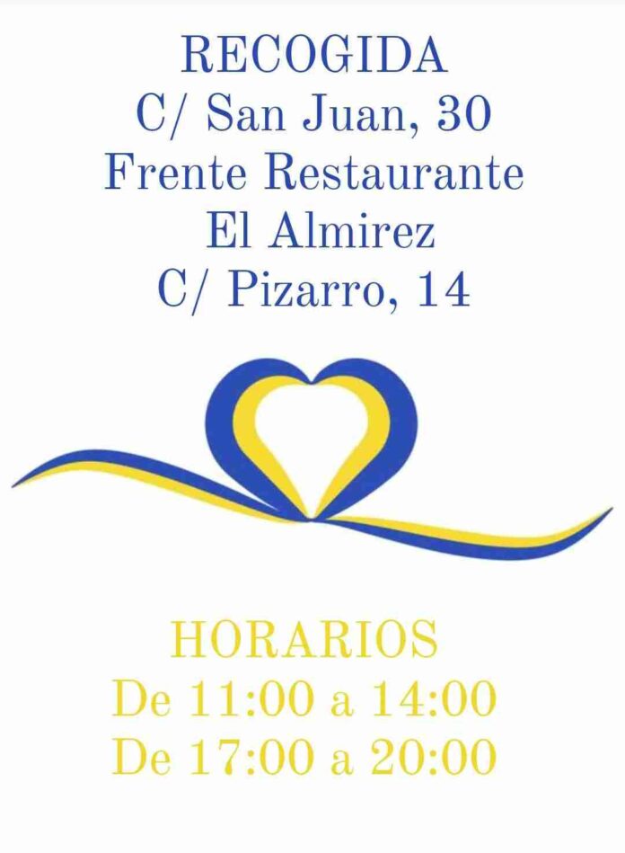 Para ello, se han establecido dos puntos de recogida: el local de la Calle San Juan nº 30 (Nadia) y la Oficina TradQuin en Calle Pizarro, n º 14 (Daniela) en horario de 11 a 14 horas y de 17 a 20 horas.