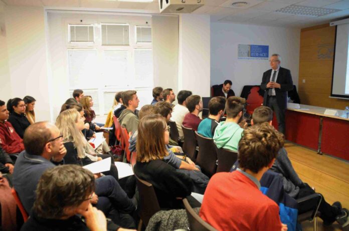 El decano del Colegio de Ingenieros de Caminos en Castilla-La Mancha, Víctor Cuellar, explicó a los alumnos la importancia de colegiarse una vez que se finalicen los estudios y se empiece a ejercer profesionalmente, dado que es obligatorio para ejercer la profesión. Además, Cuellar puso en valor la enseñanza que se imparte desde la ETSI de Caminos, la cual centra su formación en la práctica, lo que hace que sus alumnos salgan de la escuela “altamente cualificados” y “preparados para abordar cualquier tipo de trabajos de su profesión”.