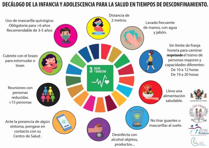 El Consejo de Participación Infantil y Adolescente de Toledo (CPIA) ha elaborado un cartel con el ‘Decálogo de la infancia y adolescencia para la salud en tiempos de desconfinamiento’ de la mano de la Asociación para la Integración del Menor Paideia y Ciudades Amigas de la Infancia.
