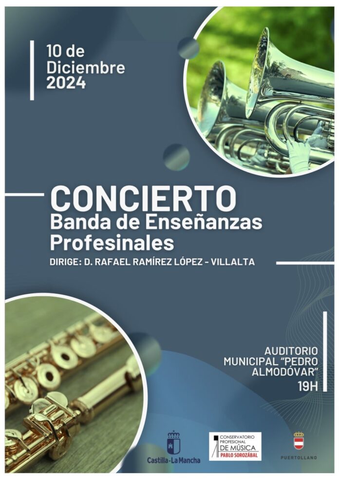 La Banda de Enseñanzas Profesionales del Conservatorio Profesional de Música “Pablo Sorozábal” de Puertollano, dirigida por Rafael Ramírez López-Villalta, se presentará este martes a las 19 horas en el Auditorio Municipal “Pedro Almodóvar”. La entrada será libre, lo que convierte este evento en una magnífica oportunidad para disfrutar de una velada musical.