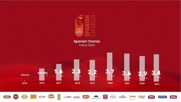 Entre las cifras que presenta el ejercicio 2023, cabe destacar el incremento del valor medio del precio del kilo de embutido curado, que alcanza los 7,66 euros. “El efecto inflación es evidente, pero también influyen otros elementos diferenciadores, como la calidad o el origen, algo que los consumidores internacionales reconocen en nuestro sello Spanish Chorizo” señala Alejandro Álvarez Canal.
