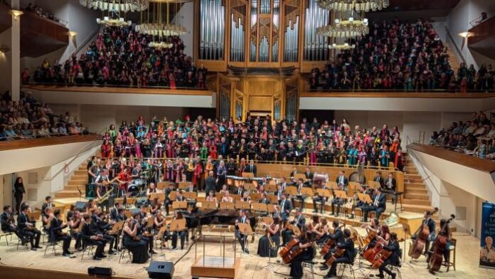 Los asistentes disfrutaron de un repertorio variado que abarcó desde obras clásicas como Beati Quorum Via de Charles Villiers Stanford hasta piezas contemporáneas como Love Me Do de The Beatles y Enamorado de la Moda Juvenil de Radio Futura. El reciente sencillo Vuela de Nena Daconte también formó parte de la velada musical. La actuación se enriqueció aún más con la participación de la Orquesta de Jóvenes "Ciudad de Murcia", el orfeón murciano y el Coro Singerhood, logrando así un evento musical inclusivo y de gran impacto.